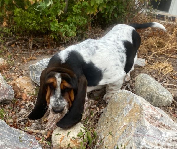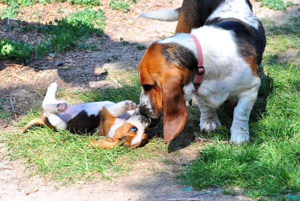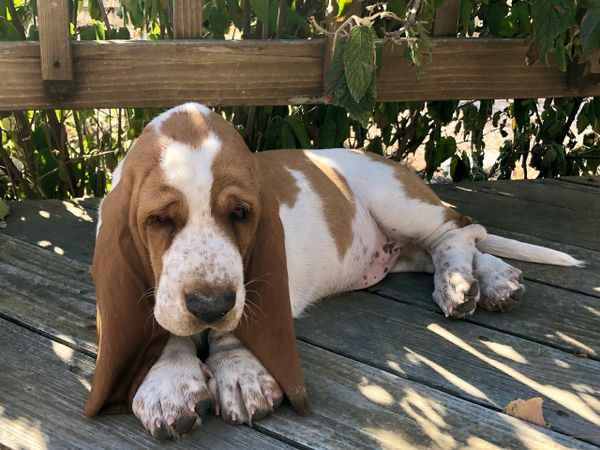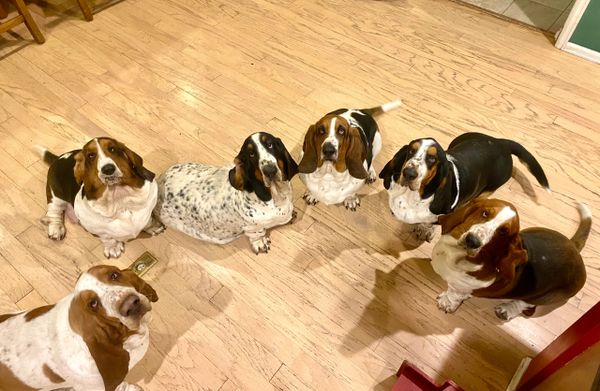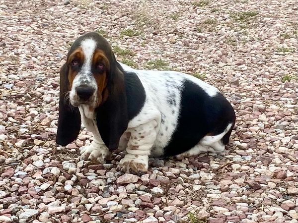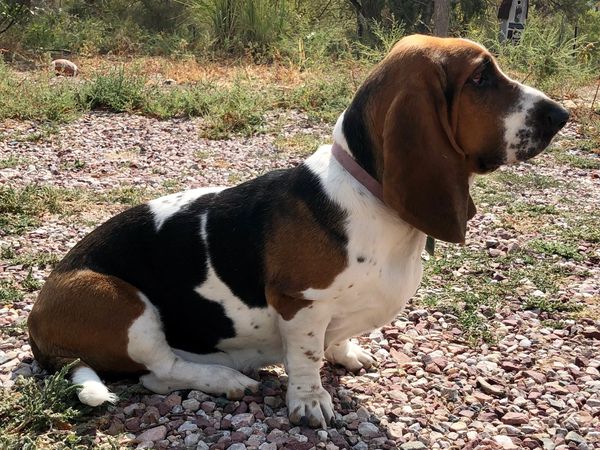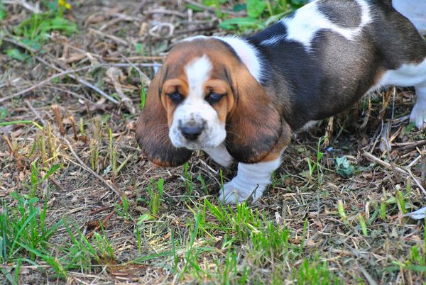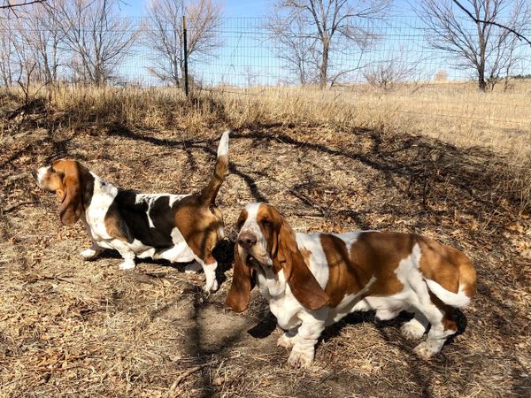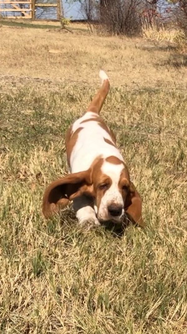 And a Basset's sense of smell is amazing, second only to the Bloodhound! Seems they can smell dinner across the acres around here! For this reason, even a well-behaved Basset Hound can easily get distracted by tracking a scent & wander off, so keep track of your Hounds!